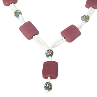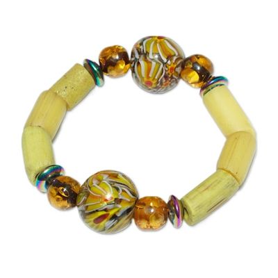 Blue Beaded Stretch Bracelet with Recycled Glass and Wood 'Accra Blue'