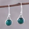 Round Green Onyx Dangle Earrings from India 'Happy Glow'