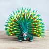 Copal Wood and Maguey Mexican Porcupine Sculpture in Green 'Cute Porcupine in Green'