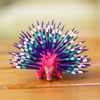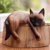 Copal Wood Floral Alebrije Black Cat Sculpture from Mexico 'Excited Black Cat'