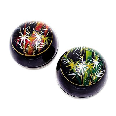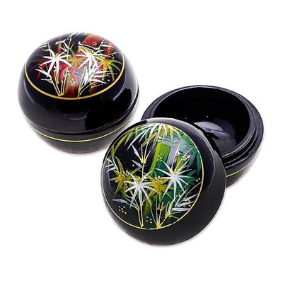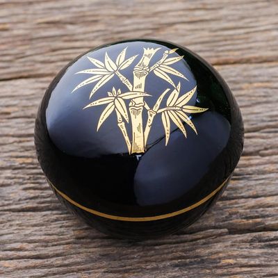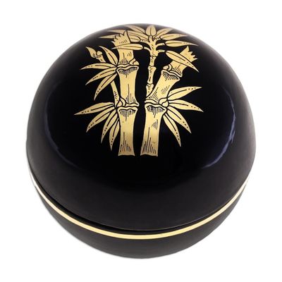 Subin Tositarat $49 Item Detail Thai Lacquered Wood Round Decorative Box Handpainted Bamboo 'Whispering Bamboo' $49 10