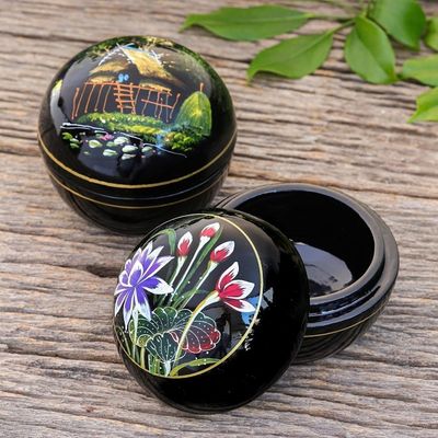 Subin Tositarat $59 Item Detail Thai Lacquered Wood Round Decorative Box Handpainted Village 'Shadow Village' $59 10
