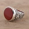 925 Sterling Silver and Carnelian Men's Ring from India 'Native Flower'