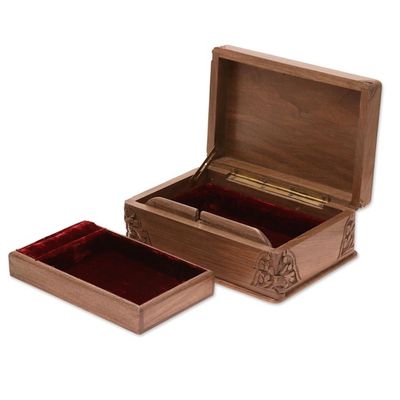 Hand Carved Wood Jewelry Box 'Rampant Nature'