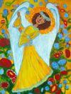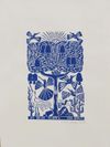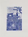 Fisherman and Boat Blue and White Brazilian Woodcut Print 'The Fisherman'