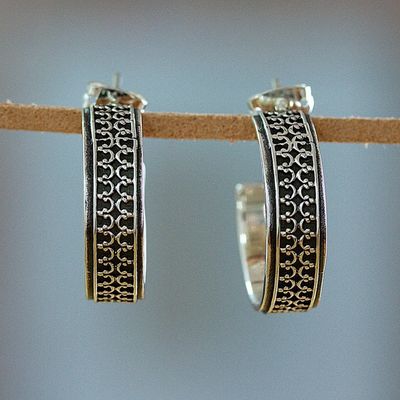 Martha Vargas $89 Item Detail Wood-Accented Sterling Silver Half-Hoop Earrings from Mexico 'Dapper Caress' $89 10