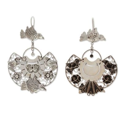 Martha Vargas $84 Item Detail Wing-Patterned Round Sterling Silver Dangle Earrings 'Fluttering Soul' $84 10