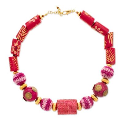 Ali Guzman $169 Item Detail Gold-Accented Fuchsia and Purple Wood Beaded Necklace 'Floral Duo' $169 10