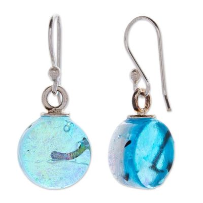 Debora and Marco $69 Item Detail Round Ginger Dichroic Art Glass Dangle Earrings from Mexico 'Jolly World' $69 10