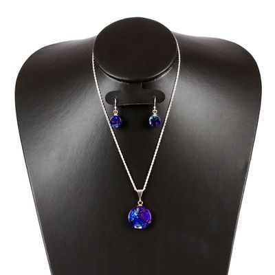 Debora and Marco $109 Item Detail Round Viridian Dichroic Art Glass Jewelry Set from Mexico 'Viridian World' $109 10