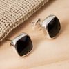 Protection Sterling Silver Dangle Obsidian Earrings 'Synthesis'