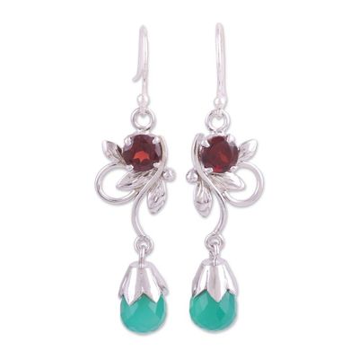 Alok Jain $59 Item Detail Leaf Motif Green Onyx and Garnet Earrings from India 'Lost in Romance' $59 10