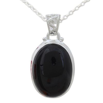 Pawanesh Gupta $59 Item Detail 925 Sterling Silver Black Onyx Pendant Necklace from India 'Midnight Majesty' $59 10