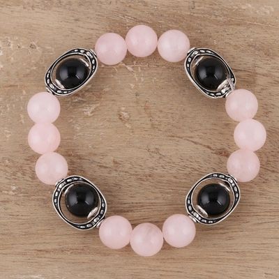 Rituu Agarwal $23.99 Item Detail Rose Quartz and Green Onyx Elastic Beaded Bracelet 'First Blush' $23.99 10