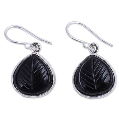 Babun Dey $54 Item Detail Handmade Onyx and Sterling Silver Dangle Earrings from India 'Magical Night' $54 10