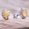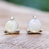 Opal and Sterling Silver Crescent Moon Button Earrings 'Embellished Moon'