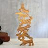 Hand Carved Teak Wood Cat-Themed Stacking Game 6 Pieces 'Ninja Cats'