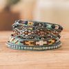 Beaded Leather and Suede Cuff Bracelet Handmade in Guatemala 'Native Designs in Light Blue'
