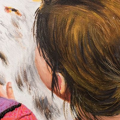 Carolina Cabrera $1169.99 Item Detail Guatemalan Girls with Dog Painting with Pompoms and Beads 'Eternal Love' $1169.9910