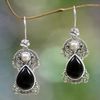 Pearls and Onyx Earrings Artisan Crafted Thai Jewelry 'Frangipani Nights'