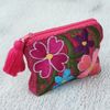 Floral Embroidered Wool Coin Purse in Cherry from Peru 'Cherry Garden'