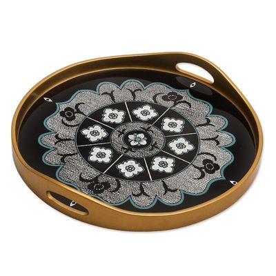 Rooster-Themed Reverse Painted Glass Tray 'Crowing Roosters'
