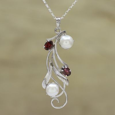 Alok Jain $109 Item Detail Fair Trade Floral Pearl and Garnet Pendant Necklace 'Dreamy Blossom' $109 10