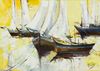 Fisherman and Boat Blue and White Brazilian Woodcut Print 'The Fisherman'