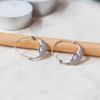 Vintage Style Handcrafted Silver Crescent Moon Hoop Earrings 'Moon at Rest'