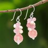 Pink Quartz and Cultured Pearl Beaded Dangle Earrings 'Soft Pink Love'