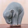 Hand Made Celadon Ceramic Sculptures Pair 'Happy Green Elephants'