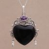 Amethyst Cultured Pearl Silver Black Bone Heart Necklace 'Love Like Midnight'