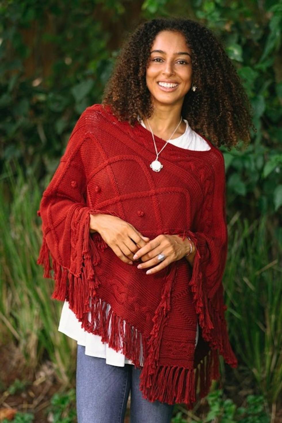 Short Knit Poncho in Claret from Thailand 'Incredible in Claret' Item ID: 2669897491