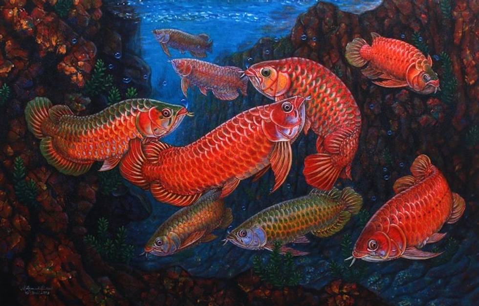 "Most of my paintings depict the arwana, or dragon fish. I am fascinated with this particular fish, because it is a symbol of prosperity. We believe the dragon fish will bring success to its owner. Hopefully, it will bring good luck for me!”