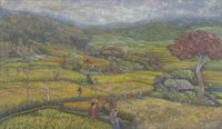 Signed Balinese Landscape Painting 'Rice Harvesting' Item ID: 2669889403