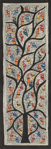 Signed Bird Madhubani Painting in Multicolor Tones 'Bird's Saga' Item ID: 2671787842