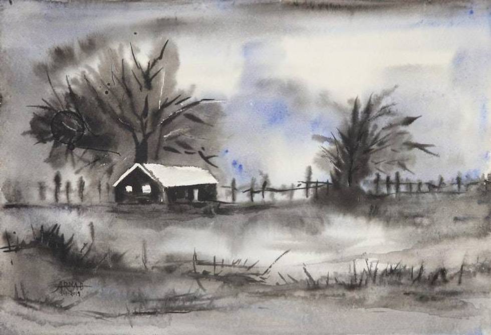 "Painting fascinates me because I don't need words to express my feelings. Once, in fourth grade, I sat under a tree to sketch during break time. My teacher liked my work and encouraged me to look forward and carry on with my painting. When I was young, I once visited a nearby river, sat under a tree and painted. The owner of a nearby oil reservoir liked it so much that he offered to buy my painting then and there. It was the first time I earned money.