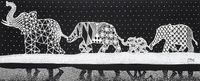 Signed Black and White Painting of an Elephant Family 'Family' Item ID: 2669889011
