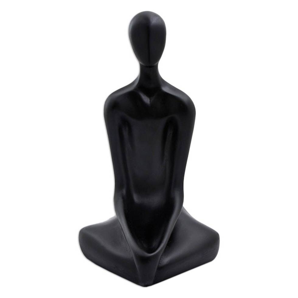 Signed Black Resin Brazilian Yoga Sculpture 10 Inch 'Meditation' Item ID: 2671692540