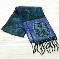 Signed Blue Batik Adinkra Scarf Handcrafted in Ghana 'Blue Unity Chain' Item ID: 2671803890