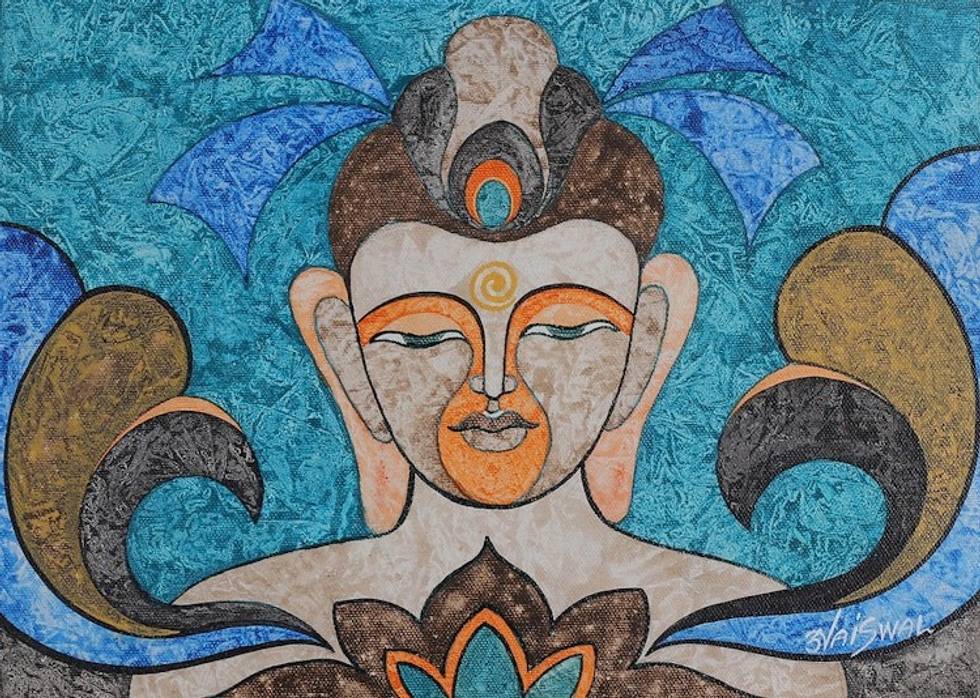 Signed Buddha-Themed Acrylic on Canvas Painting from India 'Divine Harmony' Item ID: 2671781354