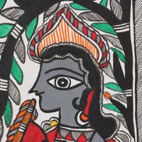 Signed Colorful Madhubani Painting of Krishna 'Majestic Krishna' Item ID: 2671789240