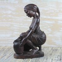 Signed Ebony Wood Sculpture of a Woman Collecting Water 'Collecting Water' Item ID: 2669888433