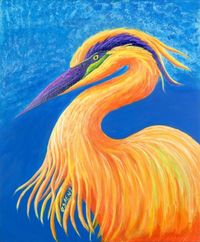 Signed Expressionist Heron Painting from Costa Rica 'Sunrise Heron' Item ID: 2671777030
