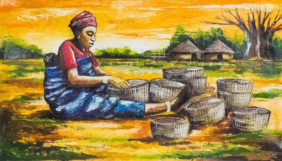Signed Expressionist Painting of a Basket Weaver from Ghana 'Basket Weaver' Item ID: 2669888586