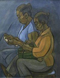 Signed Expressionist Painting of Two Saleswomen from Bali 'Canang Seller' Item ID: 2669889422