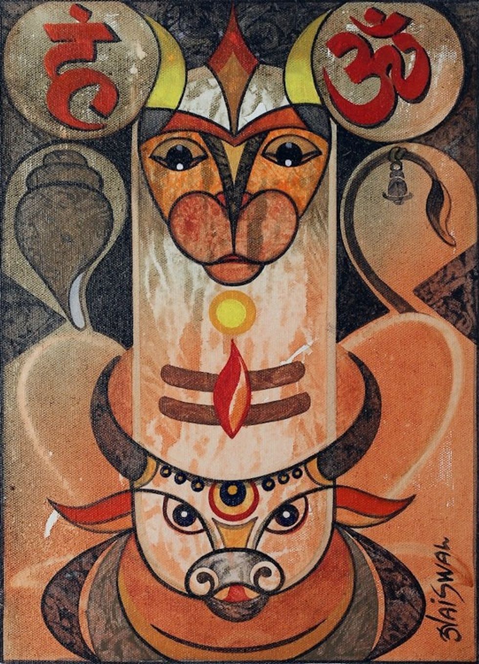 Signed Expressionist Traditional Acrylic Painting from India 'Mangal Mahadev' Item ID: 2671781769