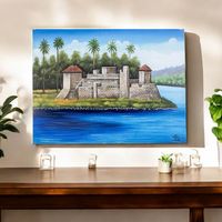 Signed Folk Art Painting of a Guatemalan Ruin 'Castle of San Felipe de Lara' Item ID: 2671776824