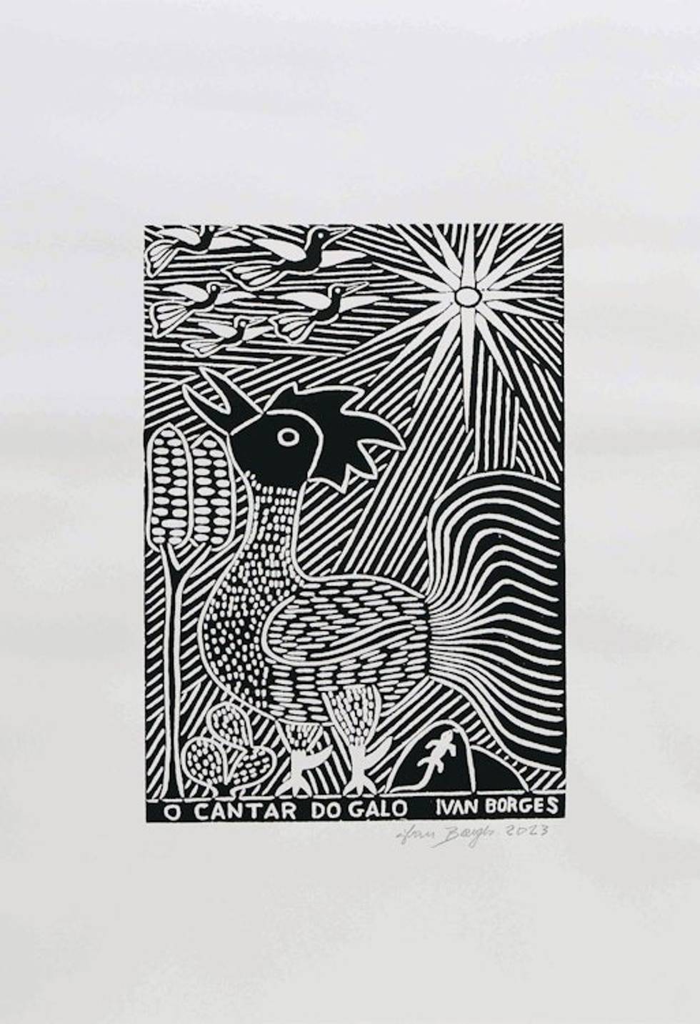 Ivan Borges was born among prints and grew up amid them. His father is J. Borges, a renowned woodcut artist whose works are widely recognized. With his father, Ivan has traveled to exhibit and teach his art in workshops in Europe and in the United States, and the young man continues traveling on his own to show his works abroad and to sell them all over Brazil.