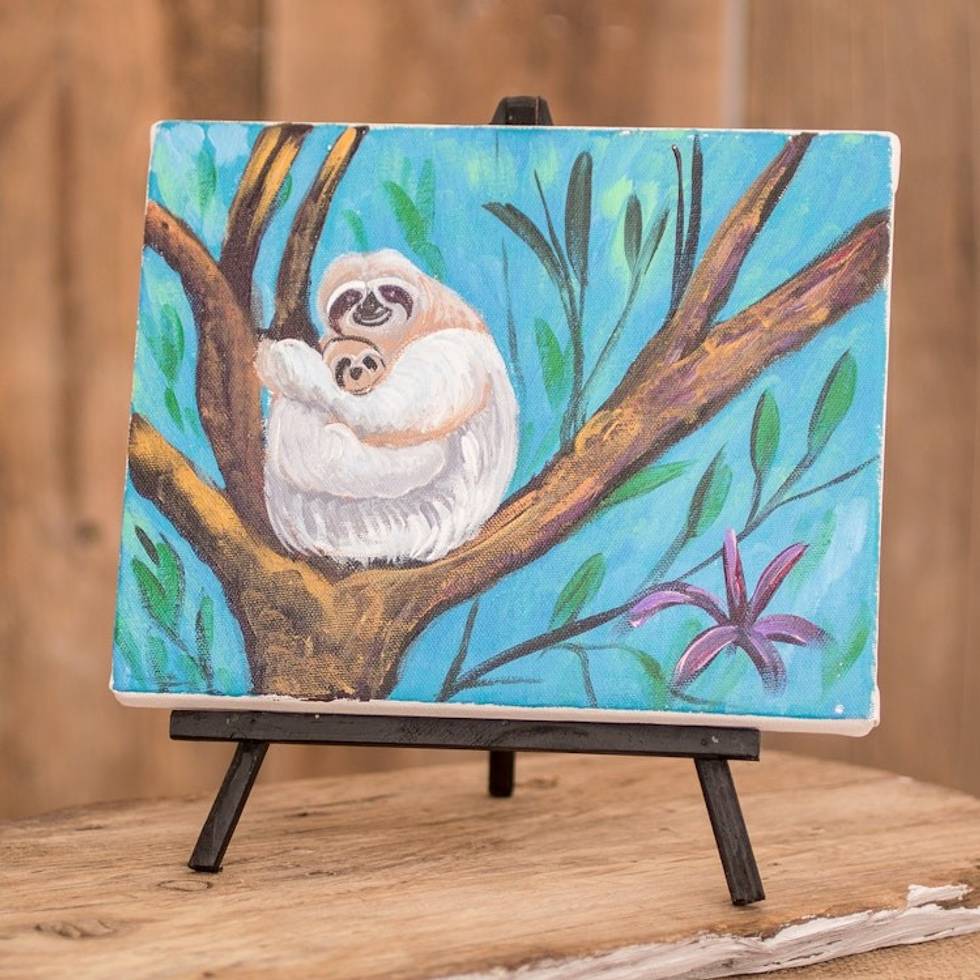 Signed Impressionist Oil Painting of Sloth with Wood Easel 'Mother and Child' Item ID: 2671771376
